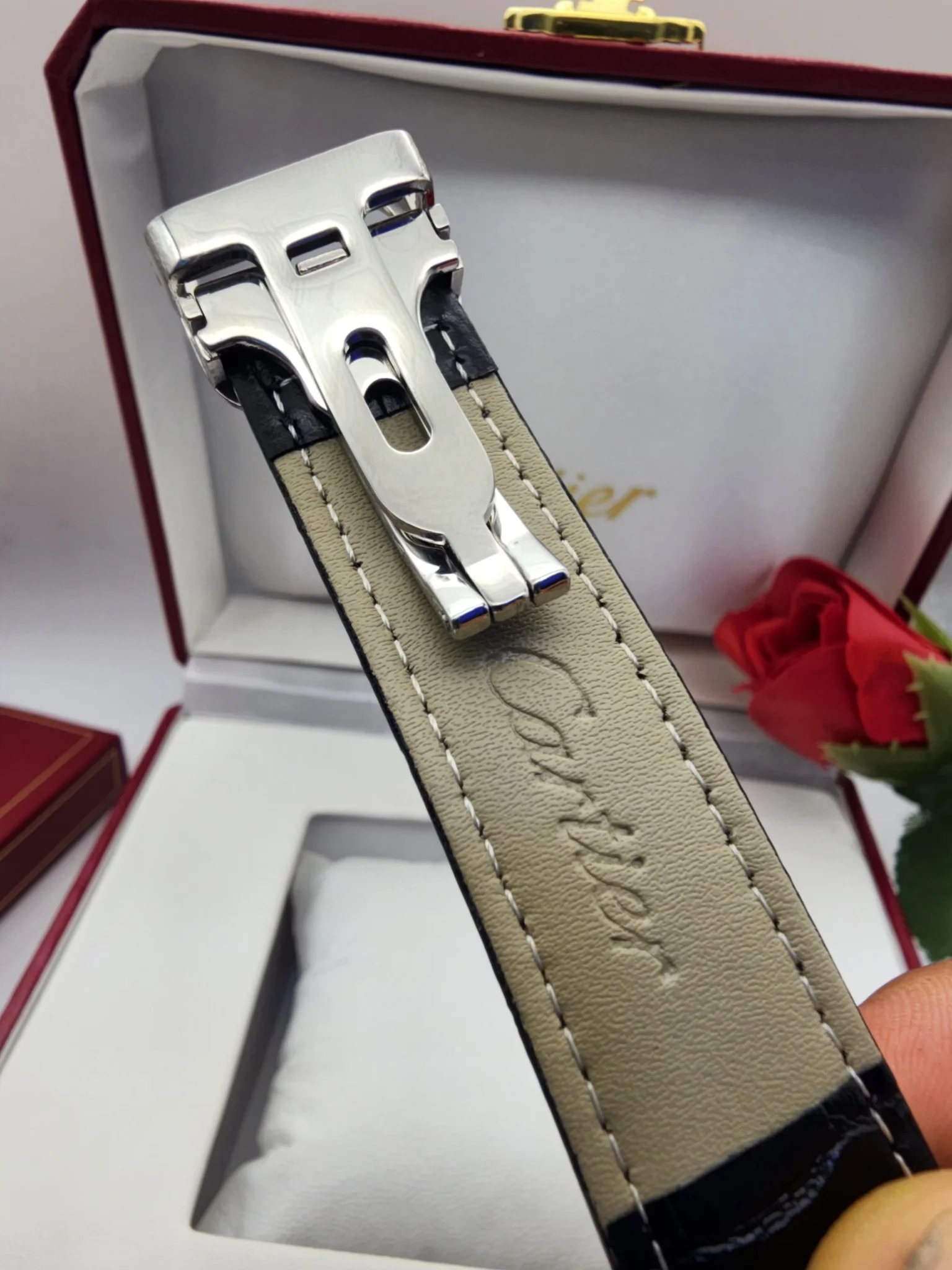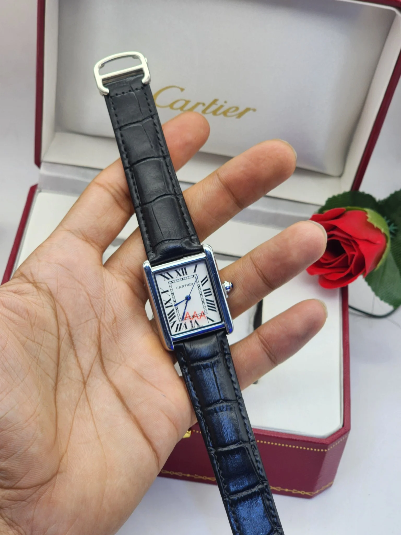 - Esthétique raffinée : Son boîtier en métal brillant et son bracelet en cuir de qualité ajoutent une touche de sophistication, la rendant idéale pour toutes les occasions, qu’elles soient formelles ou décontractées.